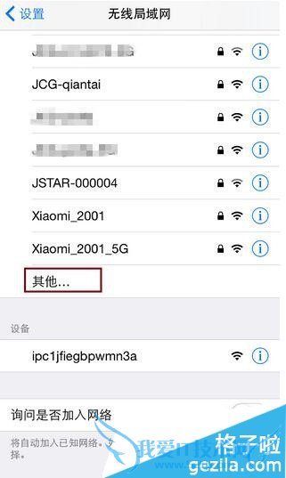 4.设置好路由器之后,接下来就可以设置iPhone/iPad连接隐藏的WiFi无线信号了。打开iPhone的“设置”-“无线局域网”,往下滑动,可以看到“其他...”,这个就是手动连接隐藏的WiFi无线信号了。