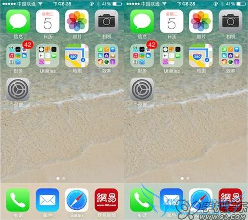 相信很多朋友都发现iOS 7更新以后屏幕下方的应用Dock栏颜色会根据屏幕背景的颜色发生改变, 如果桌面颜色为偏暖色的话,Dock栏也会偏暖色,采用屏幕色彩的一个平均值进行显示。但并不是所有的背景都适合这样的算法, Dock和背景不搭的情况还是会不时出现。