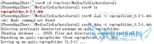 3、使用命令cd /var/root/Media/Cydia/AutoInstall来到你放置deb文件的目录。