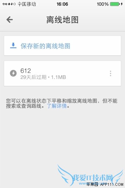 第五步,需要浏览离线地图时,点击“Google Maps”地图界面,搜索框右侧的小人图标,即可进入离线地图管理页面。点击刚才保存的离线地图,即可浏览该地图。
