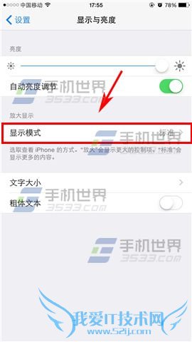 1)进入设置界面点击【显示与亮度】,再点击【显示模式】。(如下图)