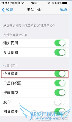 2.如果还是没显示的话,大家可以点击“设置”--“通知中心”--“今日视图”--“今日摘要”,打开就行了。