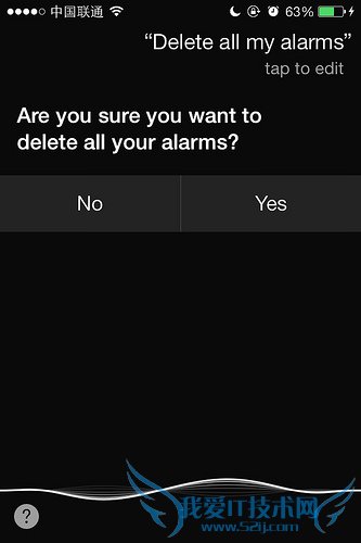 由此一来,列表里面定会出现一堆闹钟,而且时间大都是参差不齐的。一个个删除的话会非常累。当然如果你不介意的话,完全可以不删除,开关闹钟也使用Siri就好了。但如果像我这种不是处女座但又有那么一点奇怪洁癖的人,可以叫Siri帮你一次清空所有闹钟,方便快捷。语句:"删除我的所有闹钟" ,删除之后记得把常用的闹钟加回去,免得第二天上班悲剧。