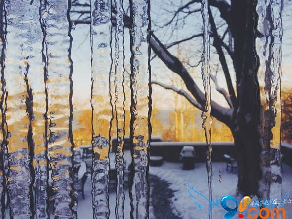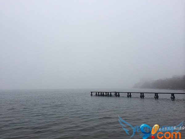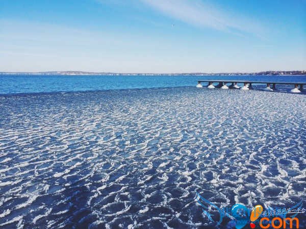 下的第一场雪。岸边的白雪、湖面和还残留阴云的天空形成三条完美的平行色带。