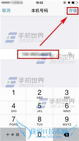 2)接着点击【本机号码】一栏,进入后输入自己的手机号码,最后点击【存储】即可。(如下图)