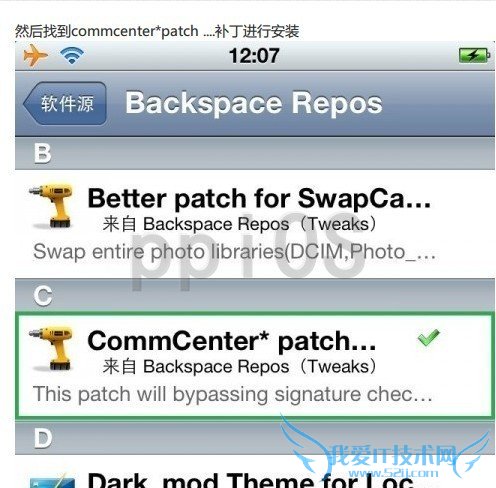 2、添加完成后,在 Cydia 中搜索或直接在新添加的源中找到 “Commcenter”插件安装