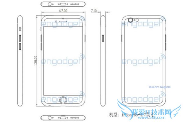 随着苹果新一代iPhone设备的发布越来越临近,各路跟新机有关的谍照、爆料便都会开始层出不穷。而今天又有媒体曝光了即将在9月发布的Phone 6s的设计图,此次iPhone 6s的厚度将会由前代的 6.9mm 增至 7.1mm,不过外观部分则不会有太大的改变。