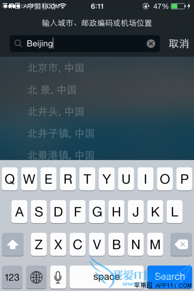 第三步,在搜索框中,输入城市的名称或拼音,即可搜索出相关的地区,选择需要的即可成功添加。