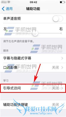 2)接着点击【辅助功能】,再点击【引导式访问】。(如下图)