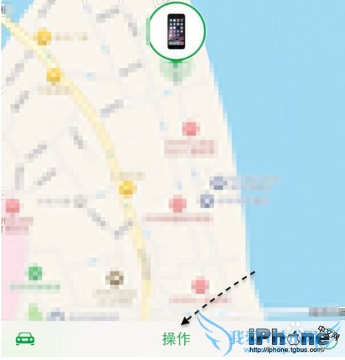 如果当前 iPhone 是处于在线状态的话,我们还可以看到它在地图中的大概位置。此时请点击底部的“操作”选项,如图所示