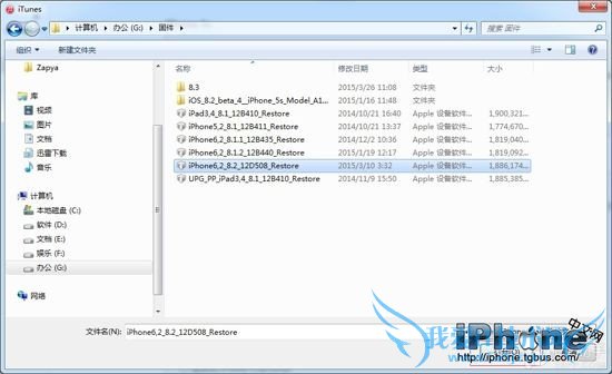 3、iTunes 会弹出对话窗,然后选择iOS8.3固件