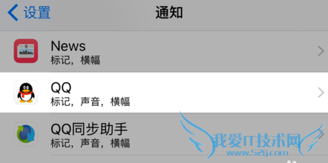 7、接着在通知列表里,找到QQ一栏并点击进入,如图所示