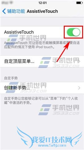 ¡¡¡¡2)µã»÷¡¾AssistiveTouch¡¿½øÈ룬¿ªÆô¡¾AssistiveTouch¡¿Óұ߿ª¹Ø¼´¿É¡£(ÈçÏÂͼ)