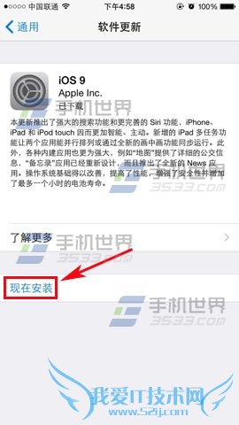 2)在通用里点击【软件更新】,最后再点击【现在安装】就可以了!(如下图)