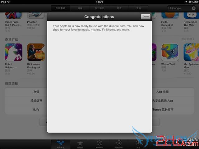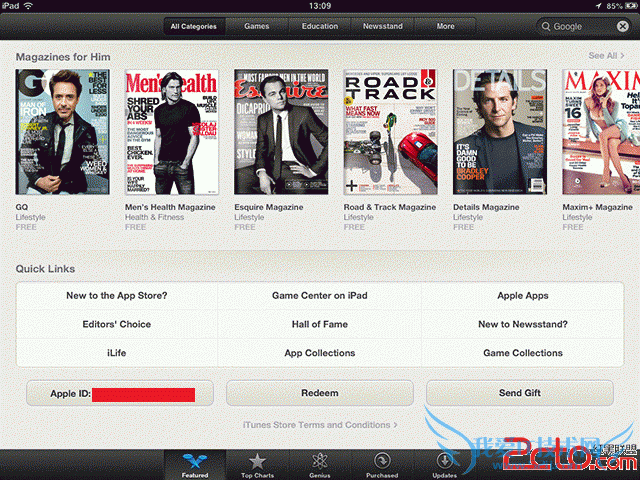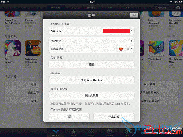 打开【App Store】,在【精品推荐】栏目中的最下面点击【Apple ID】,在随后弹出的窗口中点击【查看 Apple ID】。