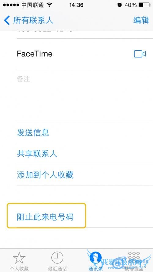 点击:电话--该电话右边信息符号--阻止此电话号码;