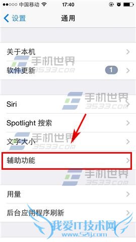 1)打开iPhone6的设置界面,点击【通用】进入,再点击【辅助功能】。(如下图)