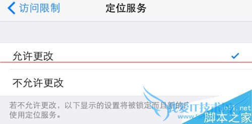 8、设置完成以后,我们再次打开 iPhone 上的“定位服务”选项,发现已经可以进行手动设置了。
