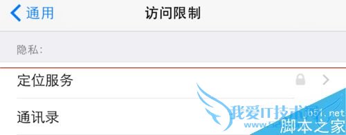 6、进入访问限制设置列表以后,请在列表中的“隐私”栏目下,点击“定位服务”一栏。