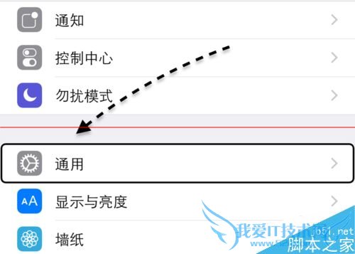 3、在设置列表里,请找到并点击“通用”一栏,如图所示