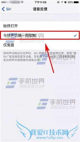 2)进入后点选【语音反馈】,选择【与铃声切换一同控制】。(如下图)