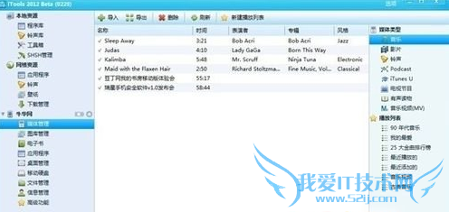 3、接着我们点击媒体管理之后,选择右侧栏的铃声,点击导入,选择你刚才下载的铃声就可以导入手机了。 (请注意,导入那个按钮在itools窗口的中间栏) 。