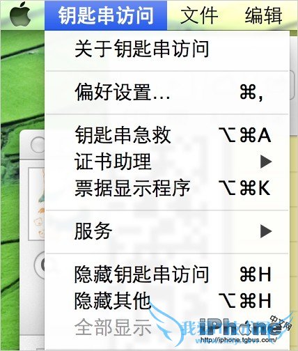 点击Mac顶部菜单栏的“钥匙串访问”,选择“偏好设置”
