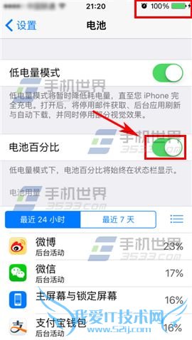 在设置界面选择【电池】,进入后打开【电池百分比】右边开关,可以看到屏幕右上角已经显示了电量百分比。(如下图)