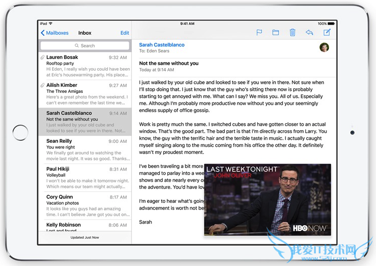 Picture in Picture 可以缩小视频的尺寸,让你在回邮件的同时还能看视频节目。