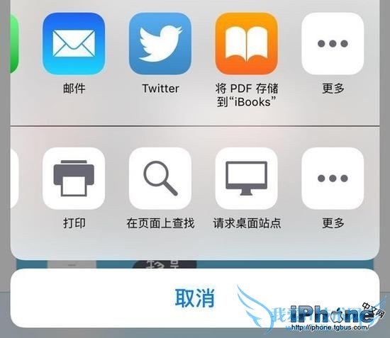 如果你在Safari中看到一个网页想把它保存下来,也支持把网站转换成PDF并保存在iBooks里。用户在Safari中点击分享按钮后就可以看到“将PDF存储到iBooks”选项了。