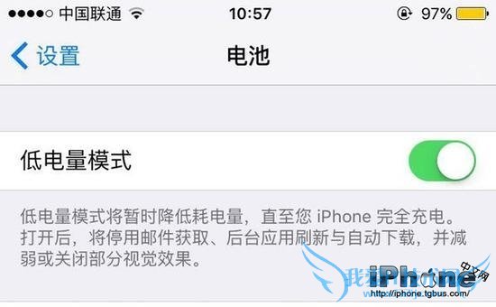 为了增加续航,苹果在iOS9中加入了低电量模式,开启这个功能后,你出门就不用带充电宝了。要启用这个功能也很简单,用户只要进入“设置-电池”选项,然后打开低电量模式即可。这个时候,iPhone的电池图标会变成黄色的,屏幕亮度也会降低。