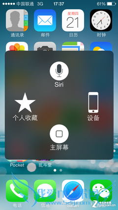 以往我们对于虚拟Home键的认识只是停留在取代Home键的操作上。但实际上它还有很多用途,经过分类,它主要拥有三层操作方式。第一层也就是点击虚拟Home键之后可以调出Siri、设备、主屏幕、个人收藏四个功能。