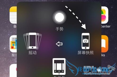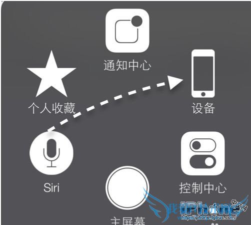 随后我们会在屏幕上的看到一个小白点,点击以后,会弹出功能菜单。此时请点击“设备”图标,如图所示