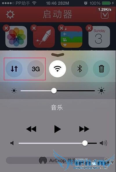 最后,到这里就设置结束,下拉通知中心看看!就可以发现蜂窝数据图标出现在通知中心里面了,点击它,就可以直接进入