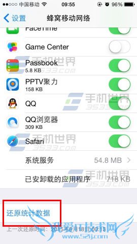 点击“还原统计数据”后,数据就会清零,重新统计。看似不显眼的小功能其实大有作为,我们也可以根据自己的月结日来进行定期数据还原,这样一来我们就可以方便地查看自己这个月所消耗的蜂窝数据流量了。最为重要的是,它记录的仅仅是蜂窝数据的消耗,不会将Wifi下所消耗的流量也算入其中,更为符合中国用户的使用习惯。