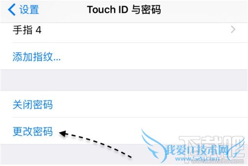 接下来在 Touch ID 与密码的设置列表里,点击“更改密码”一栏选项,如图所示