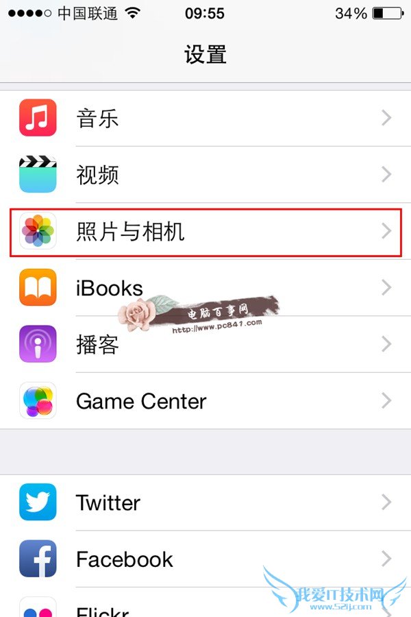 二、进入iPhone6【设置】,找到【照片与相机】设置,如下图所示。