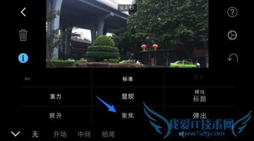接下来在左下方可以选择文字出现在视频中的位置,可以是开场,中间或结尾位置。选择好以后再点击“T”图标,如图所示