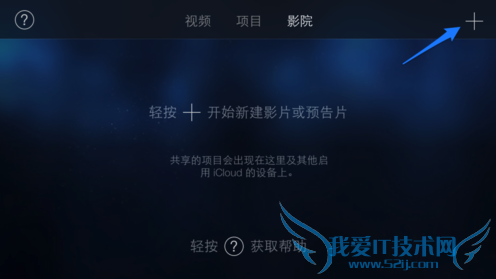 在手机上打开 iMovie 以后,点击右上角的 + 按钮创建影片,如图所示