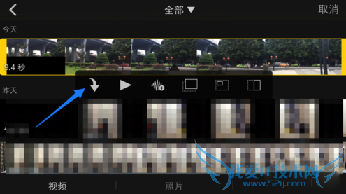随后会显示 iPhone 手机上的所有视频,选择想要添加的视频并点击导入图标,如图所示