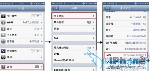 进入设置点击通用→进入通用点击关于本机→进入关于本机即可看见IMEI信息,将其记录下来即可。(具体操作如下面两张图所示)