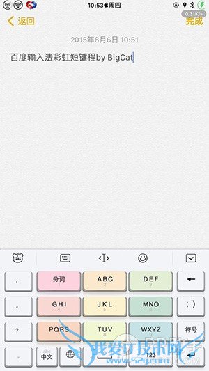 自从用了iOS8之后,第三方输入法中就百度算是做的不错的了, 最近出的很多皮肤也很不错,其中的彩虹键盘比较吸引我,但是键程太长,容易误触,看到贴吧有网友分享短键程安卓版,苦于没有iOS版,就打算自己修改一套,试了一晚,没有什么bug,特分享出来给大家: