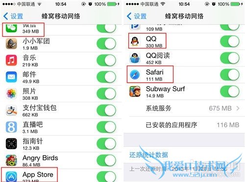 所以当iPhone用户在流量要超过套餐使用量时,我们就可以通过上述的设置来查看和关闭一些消耗流量比较大的软件,在关闭之后用户尽量找有 WiFi网络环境的地点上网。当然了,如果我们的套餐流量还很充足,我们还可以用上述的办法来打开经常要使用流量的软件,操作起来也比较简单。