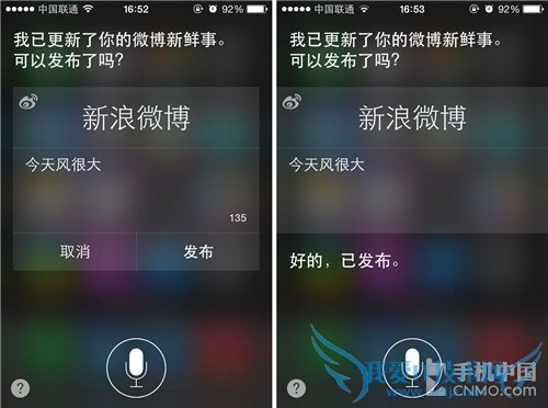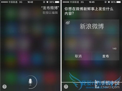 iPhone用Siri语音发布微博