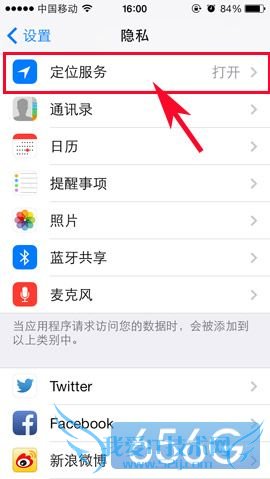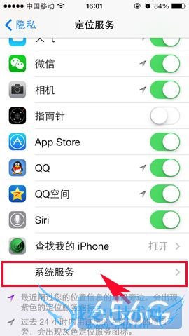 2)进入【隐私】界面后点击【定位服务】,然后往下拉,找到【系统服务】后点击进入。(如下图所示)