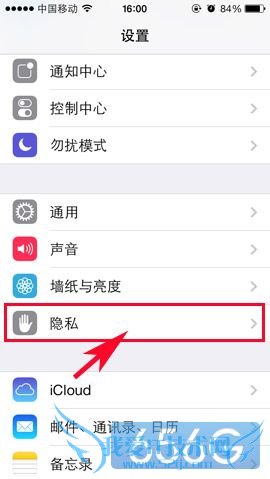 1)首先,点击【设置】进入,然后点击【隐私】。(如下图所示)