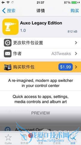 用户可以在设置当中选择将任务卡片向上和向下拖动动作所起到的作用,默认状态下用户长按卡片还可以完成一键关闭所有应用程序的操作。而对于相关页面的显示顺序和其中各选项的摆放位置用户也可以很方便的进行选择。插件对于已经使用了iOS8系统,却又不喜欢《Auxo 3》设计风格的用户来说还是非常实用的。目前插件已经在Cydia当中上架,售价为1.99美元。