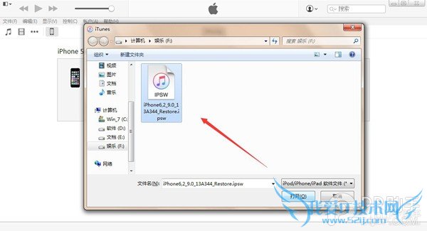 4、iTunes会弹出对话窗--请选择已经下载好的固件--点击更新--等待iTunes运行。