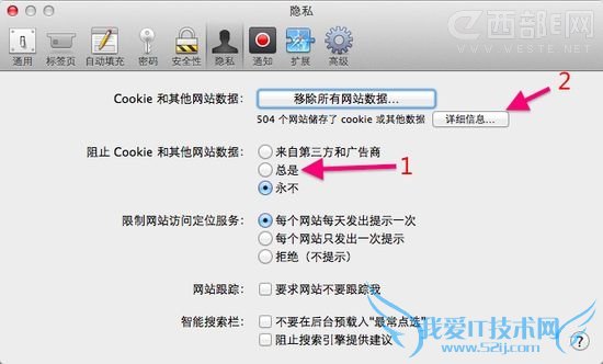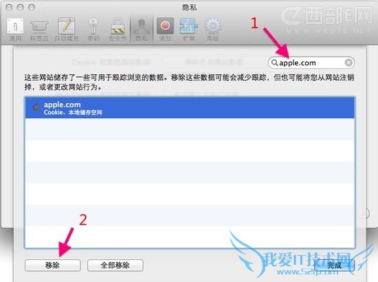 8. 完成后可重新搜索“ apple.com ”此项记录,确认移除后才可继续下一步操作,如果仍没有移除,退出并重新启动Safari,重复上述几个步骤