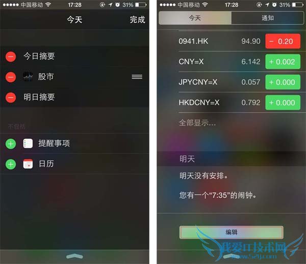 在通知中心“今天”当中包含比如是今天明天的安排,股票小工具和其他你可以添加通知中心的第三方插件。其实建议大家应该再次检查一下通知中心的某些工具是否真的需要用到,这样一来,至少能确保它们不消耗更多的电量。